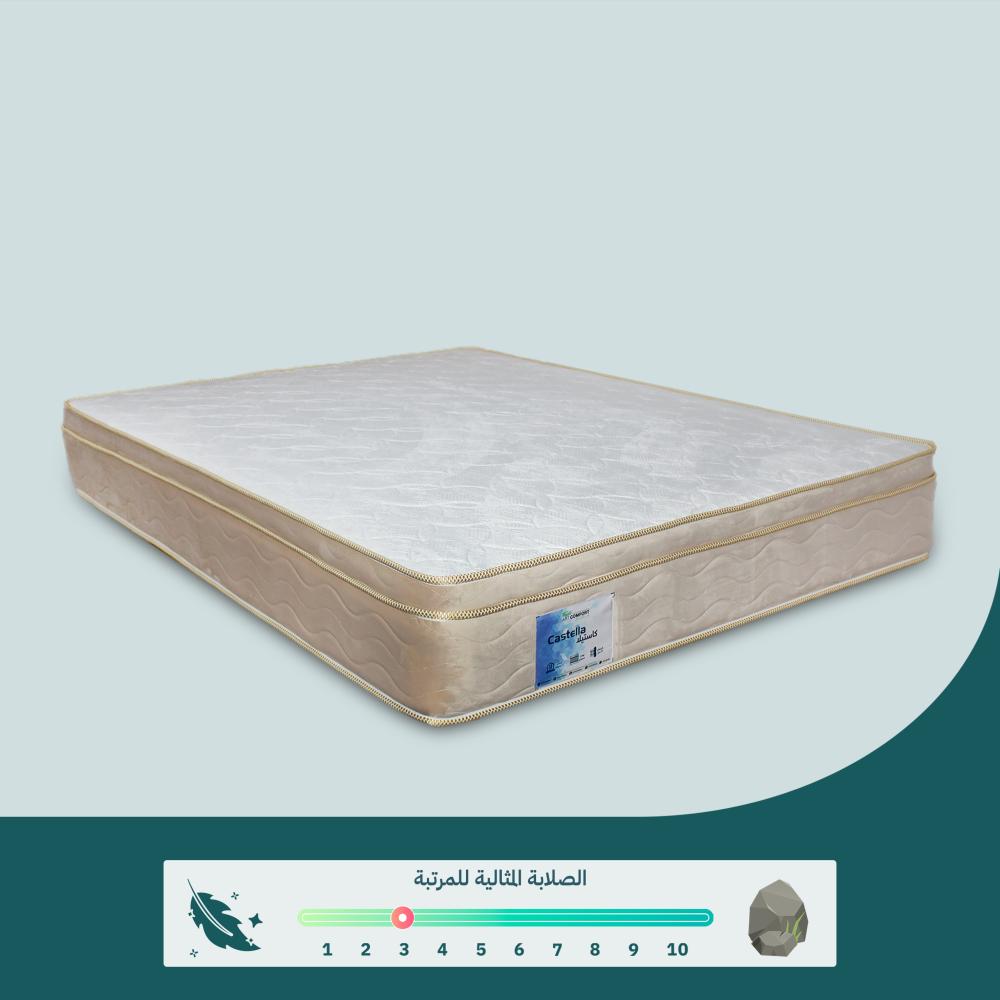 مرتبة كاستيلا مصممة بأحدث التقنيات لتمنحك راحة فندقية في منزلك. بفضل طبقات الإسفنج الميموري فوم ونوابض البوكت سبرنج، ستشعر بالدعم المثالي لجسمك وتقليل نقاط الضغط، مما يساعدك على النوم العميق والاستيقاظ منتعشًا دون آلام!